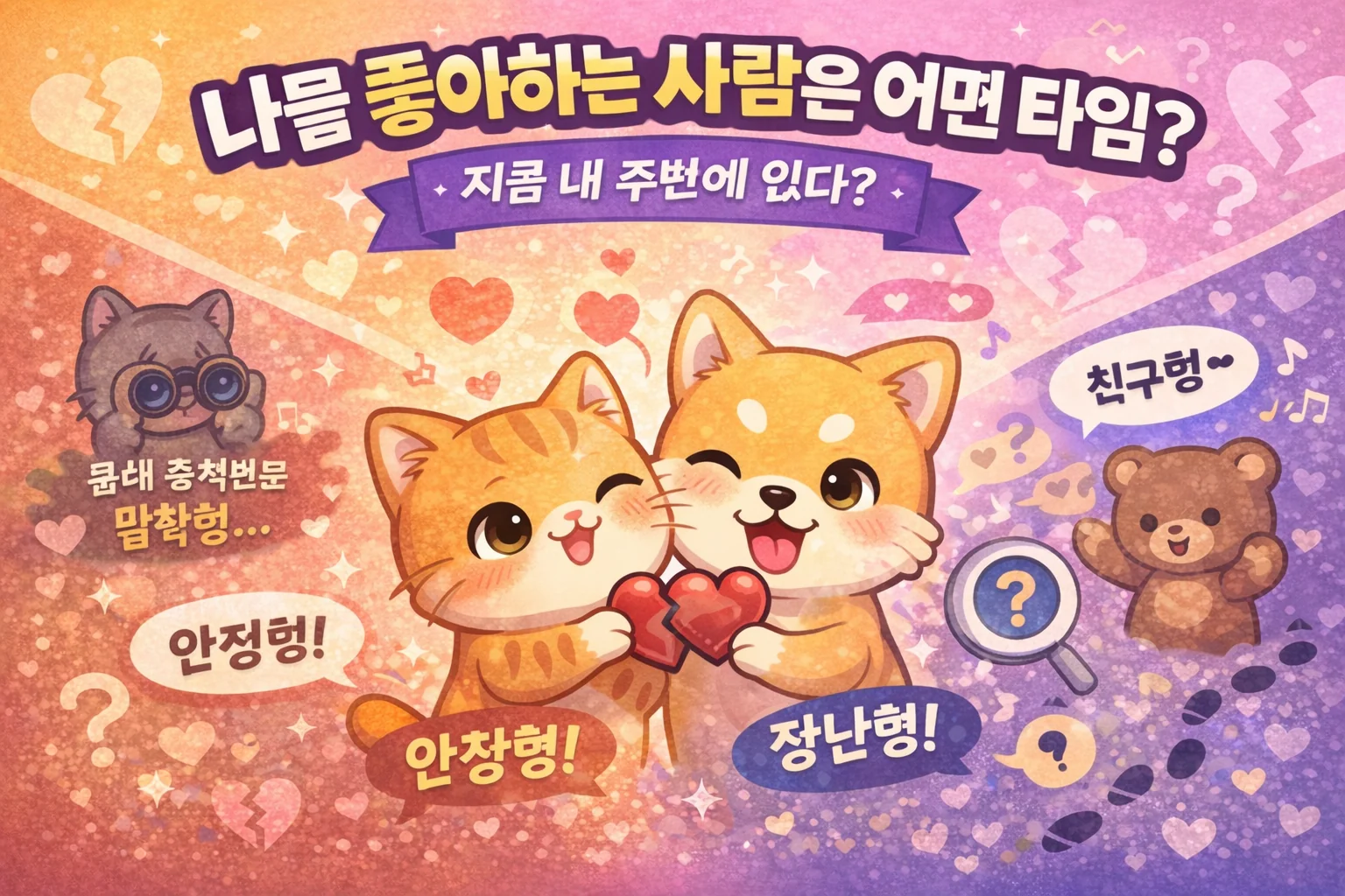 썸·연애 코너는 가볍게 즐기되, "나도 이런 편이구나" 정도만 가져가도 충분해요. 진지한 관계 결정은 테스트 밖에서, 본인과 상대와의 대화로 이어가는 걸 권장합니다.